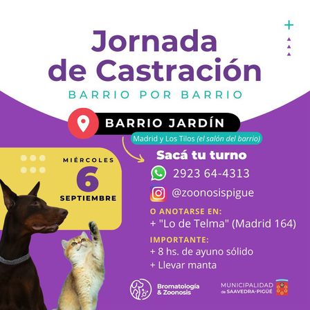 El miércoles hay castraciones en el Barrio Jardín