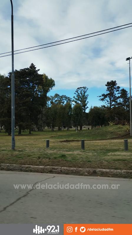 Integrantes de la firma local IngeniRiego están llevando a cabo las labores iniciales con el zanjeo previsto para la obra que dotará de riego al predio del Monumento por Veteranos y Caídos en la Guerra de Malvinas.