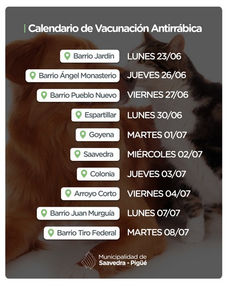 Integrantes del Área de Zoonosis Municipal estarán recorriendo los barrios de Pigüé como así también las localidades del distrito para aplicar la vacuna antirrábica a perros y gatos.