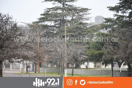 Hay nieve que levemente comienza a caer en la ciudad de Pigüé.