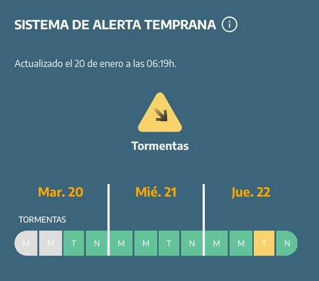 Para este jueves hay alerta de tormentas de nivel amarillo