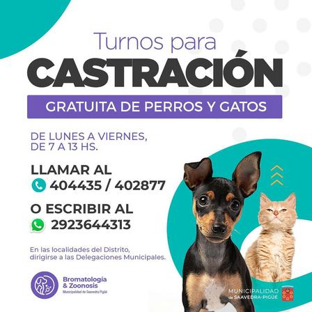 El día miércoles 8 de marzo, por la mañana, habrá castraciones de mascotas en la localidad de Saavedra.