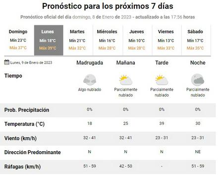 Para hoy, lunes, en la localidad, el Servicio Meteorológico Nacional advirtió sobre temperaturas elevadas.