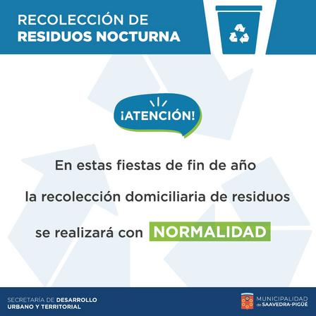 La Secretaría de Desarrollo Urbano y Territorial confirmó que, en la ciudad de Pigüé, la recolección de residuos este fin de semana se realizará normalmente.