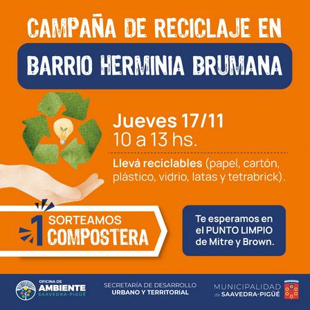 La campaña de reciclaje llegará al Barrio Herminia Brumana