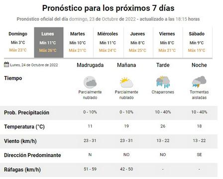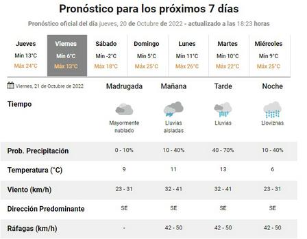 De acuerdo al reporte del Servicio Meteorológico Nacional, hoy, lunes, en la localidad de Pigüé, podrían darse vientos de hasta 59 kilómetros por hora.
