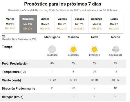 Se espera una jornada con vientos fuertes de hasta 50 kilómetros por hora.