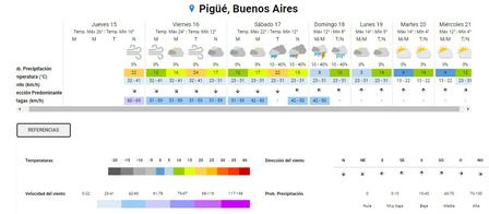 Se espera, para Pigüé, de acuerdo al Servicio Meteorológico Nacional, una temperatura en escena acompañada con vientos que podrían registrar ráfagas de hasta 60 kilómetros por hora.