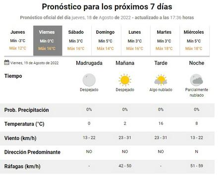 Este viernes, por la tarde, la temperatura más elevada podría llegar a los dieciséis grados centígrados en la ciudad de Pigüé.