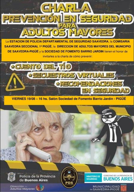 Hoy, viernes, desde las 16.00 horas, en el Salón de la Sociedad de Fomento del Barrio Jardín, personal policial estará al frente de una jornada en la que se darán recomendaciones en materia de seguridad.