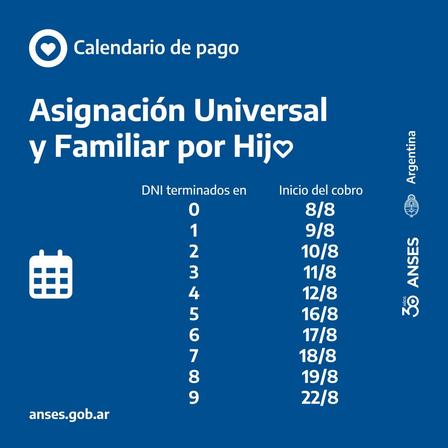 El lunes próximo los pagos de Asignación Universal por Hijo y de Asignación Familiar por Hijo se harán para aquellas personas con DNI finalizado en número 9