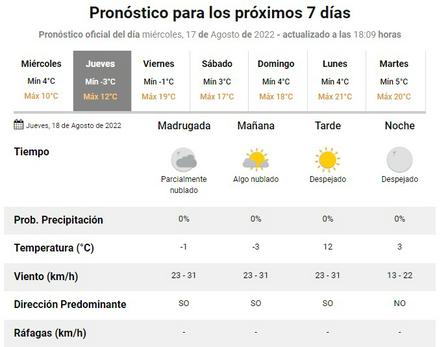 Se espera, para esta tarde, en Pigüé, la presencia de vientos de hasta 31 kilómetros por hora.