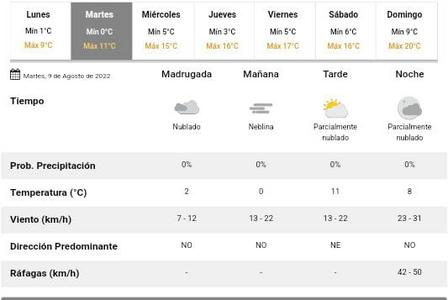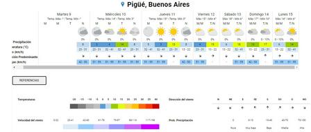 Durante el día de hoy, miércoles, en la ciudad, la temperatura más elevada podría alcanzar los catorce grados en la localidad de Pigüé.