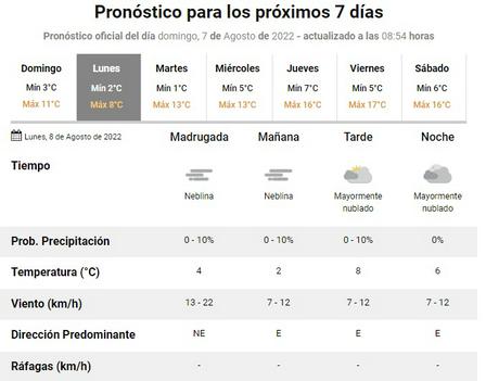 El registro de temperatura, luego de las 5.00 horas, era de un grado bajo cero en la ciudad.