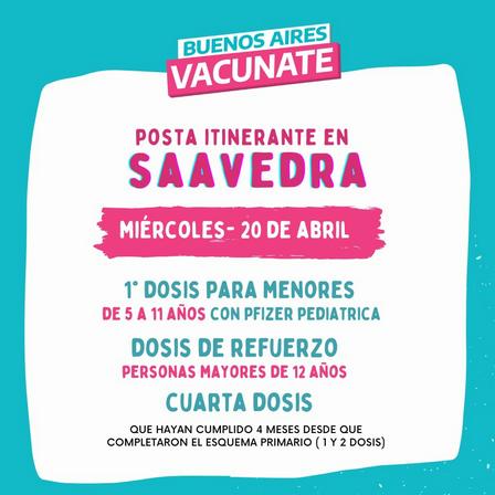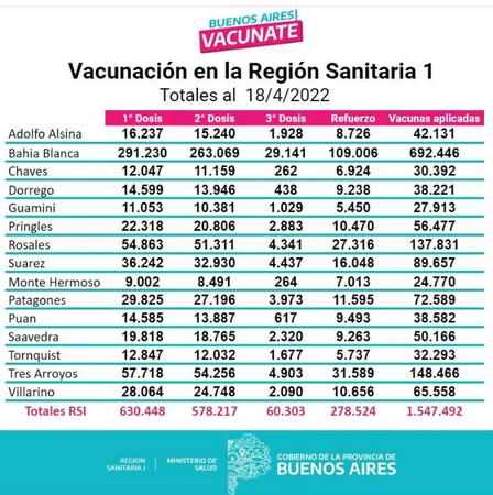 El Partido de Saavedra tiene 19.818 primeras dosis, 18.765 segundas dosis, 2.320 terceras, y 9.263 refuerzos antiCovid19.
