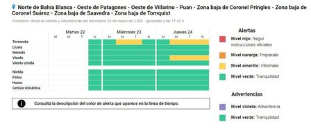 Se prevén valores de precipitación acumulada entre 40 y 70 mm, pudiendo ser superados localmente según el Servicio Meteorológico Nacional.
