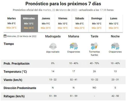 Durante el día de hoy, miércoles, en la localidad, podrían darse veintiséis grados de máxima.