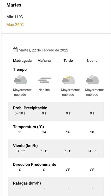Por la mañana anuncian, desde el Servicio Meteorológico Nacional, la presencia de neblina.