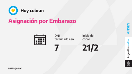 Con la utilización de la tarjeta de débito, hoy, lunes, cobran la Asignación por Embarazo las titulares con documentos concluidos en 7.