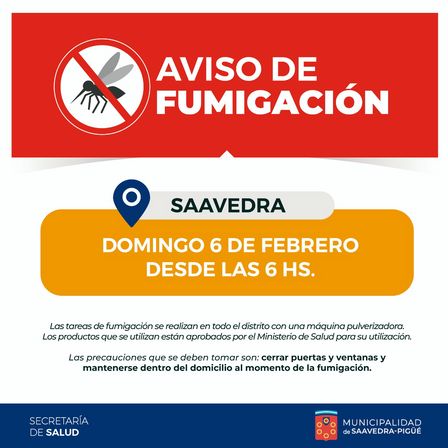 En las primeras horas del domingo se llevará a cabo la aplicación de insecticidas en territorio saavedrense.