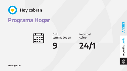 Con la utilización de la tarjeta de débito, hoy, lunes, perciben la Asignación Universal por Hijo y la Asignación Familiar por Hijo titulares con documentos concluidos en 9.