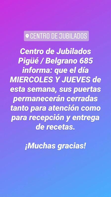 En la sede de calle Belgrano 685 de la ciudad de Pigüé no habrá actividad ni hoy ni mañana.
