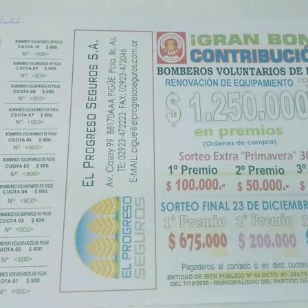 Los Bomberos Voluntarios tienen en disponible su bono contribución del 2022.