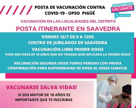 La Posta Itinerante llegará a la localidad para aplicar primeras dosis.