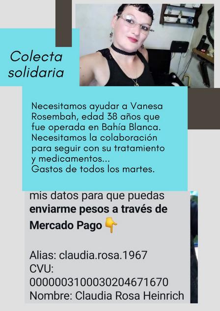 Requieren de aportes solidarios a través del Alias: claudia.rosa.1967 con el nombre de Claudia Rosa Heinrich.