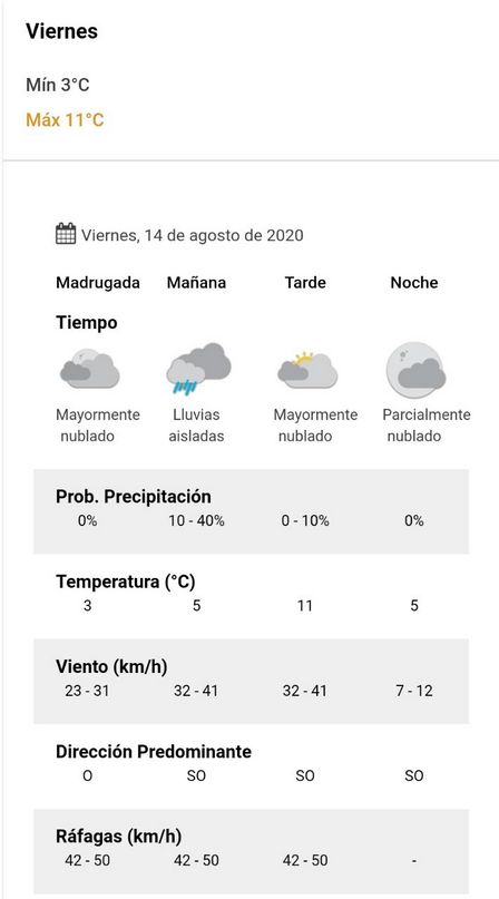 Durante el día de hoy, viernes, en la ciudad, la temperatura más elevada podría alcanzar los once grados centígrados.
