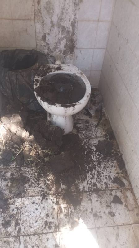 Una gran cantidad de tierra fue arrojada sobre uno de los inodoros del baño.
