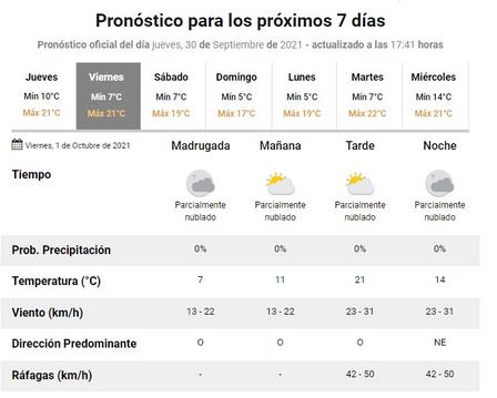 Se daría una jornada soleada con la presencia de vientos de hasta 50 kilómetros por hora.