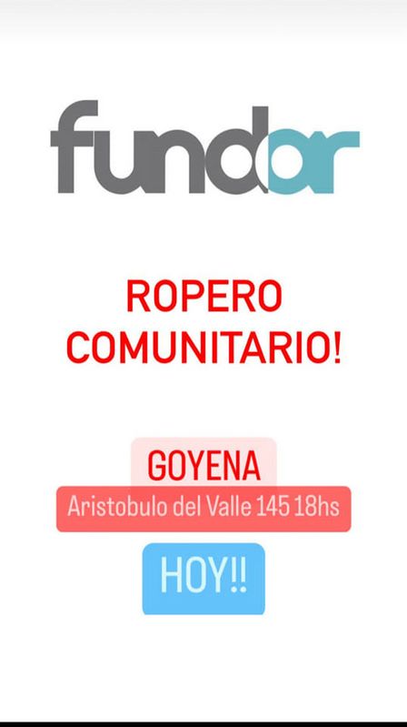 Fundar habilitará su Ropero Comunitario en Aristóbulo del Valle 145 de Goyena.