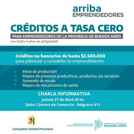 Se hará una charla informativa sobre líneas de créditos para emprendedores dependiente del Ministerio de Producción de la Provincia de Buenos Aires.