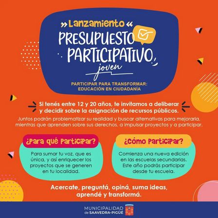 Presentarán una nueva edición del Presupuesto Participativo Joven