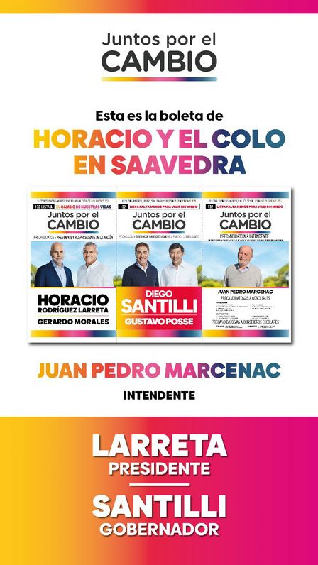 El mensaje dice que es “la lista que va a transformar para siempre el Distrito de Saavedra”.