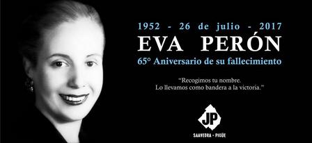 Esta mañana la Juventud Peronista del Partido de Saavedra dio a conocer un mensaje referido al 65 aniversario del fallecimiento de María Eva Duarte de Perón.