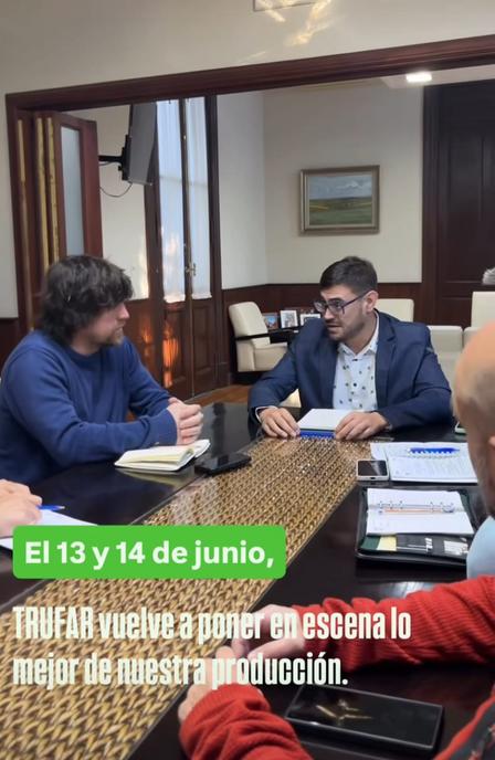En el despacho del Intendente Municipal el Jefe Comunal, acompañado de integrantes del Gabinete, y del concejal de La Alianza La Libertad Raúl Zentner, recibió a integrantes de Radici Trufas y de Trufas del Nuevo Mundo.