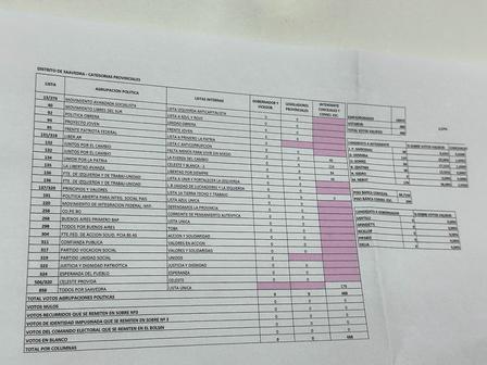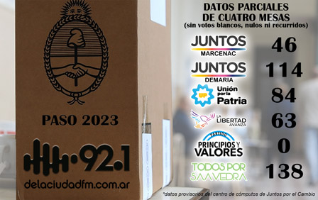 Datos provisorios del partido de Saavedra provistos por el centro de cómputos de Juntos por el Cambio de un total de veinte mesas escrutadas.