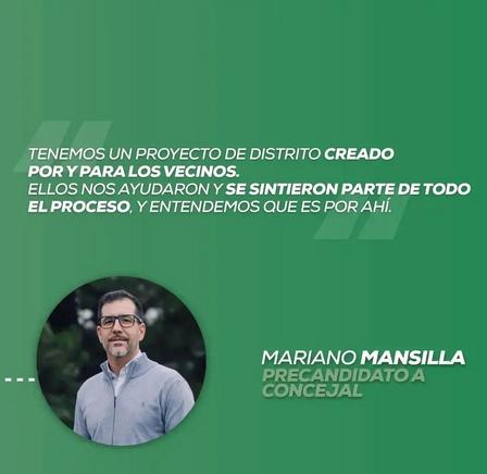 Mariano Mansilla dijo 'tenemos un proyecto de distrito creado por y para los vecinos'