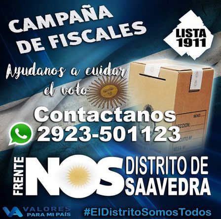 En el salón de calle Belgrano 131 de la ciudad NOS está inscribiendo a los fiscales que se anoten para colaborar.
