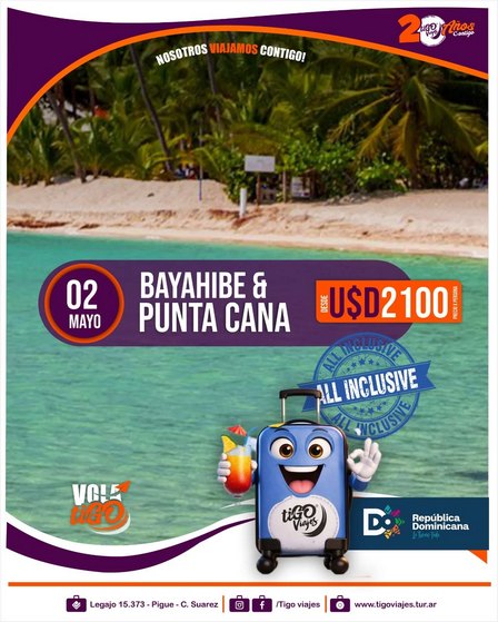 Tigo Viajes recibe consultas en su Casa Central de Avenida Eduardo Casey 802 de Pigüé o bien al 2923 58 47 14.