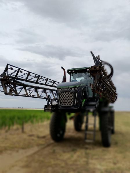 Pulverizaciones El Chala de Mauricio Blanco cuenta con su unidad Metalfor 7040, registrando 41 metros de ancho de labor, con 11 cortes automáticos y dotada de piloto automático.