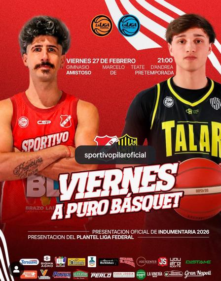Es el plantel de Primera División de Básquet del Club Sportivo Pilar el que jugará hoy, viernes, 27 de febrero de 2026, a las 21.00 horas.