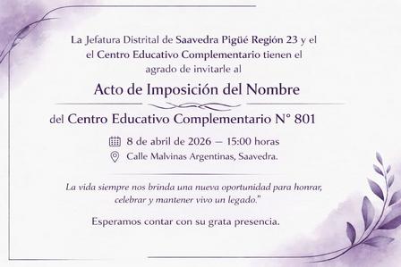 El Centro de Educación Complementaria de Saavedra tendrá este encuentro el día 8 de abril, a las 15.00 horas, en su espacio de calle Malvinas Argentinas.
