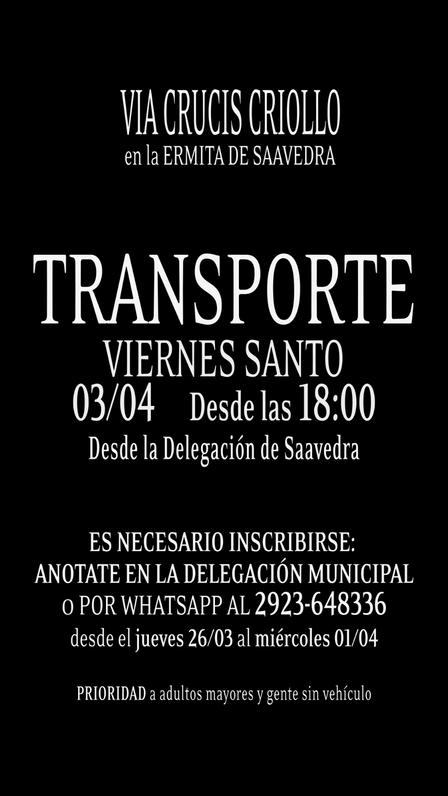 El transporte gratuito para el Viernes Santo partirá, hacia la Ermita, desde la Delegación, a las 18.00 horas.