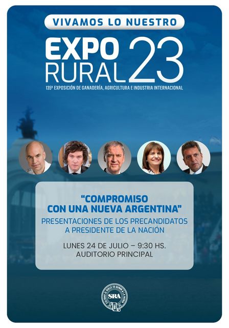 La Expo Rural Internacional tendrá a Patricia Bullrich, Javier Milei, Sergio Massa, horacio Rodríguez Larreta y a Juan Schiretti.