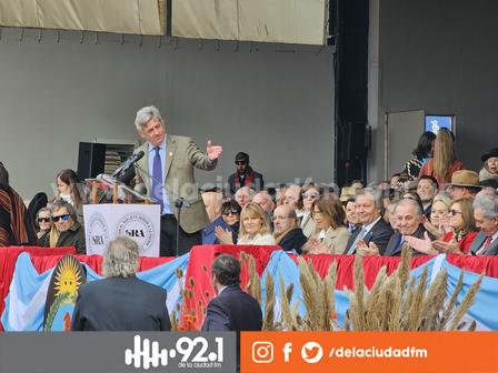 Las palabras de Nicolás Pino fueron las siguientes: "aquí estamos, juntos, celebrando la inauguración de la Exposición Rural. Ya van 134 ediciones. Y esta vez, la 135, como las anteriores, estamos haciendo la Exposición entre todos.
