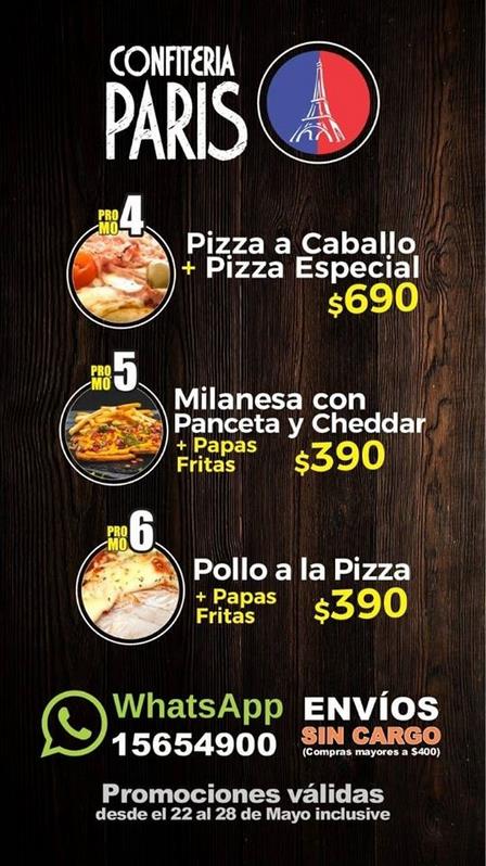 Confitería París dio a conocer nuevas promociones que incluyen pastas, hamburguesas, pizzas, postres, y bebidas.