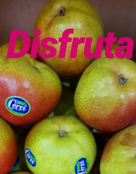Disfruta tiene peras de colores, cherrys de colores, y frutillas
